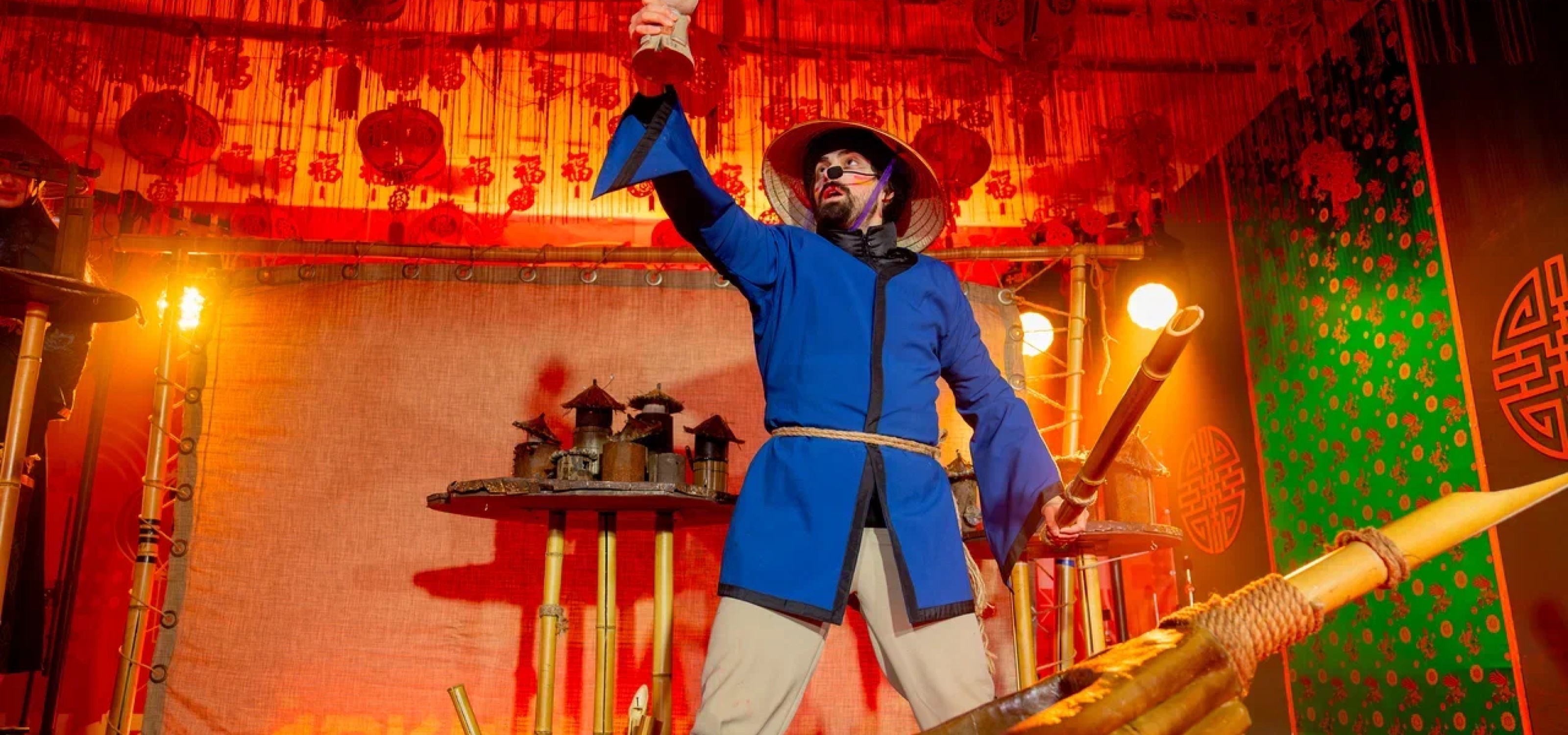 以中国传统新年元素装饰的舞台上,将为游客呈现创意表演、神话故事与绚丽舞台秀
