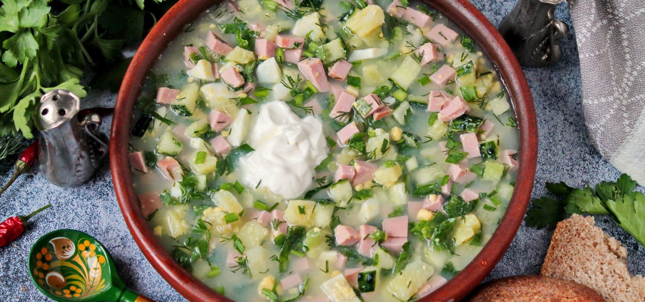 这款冷汤是炎炎夏日的救星。以开菲尔(Kefir)或格瓦斯(Kvass)为汤底,加入切碎的蔬菜、香草和肉类。它清爽提神,是夏日里轻盈健康午餐的完美选择。