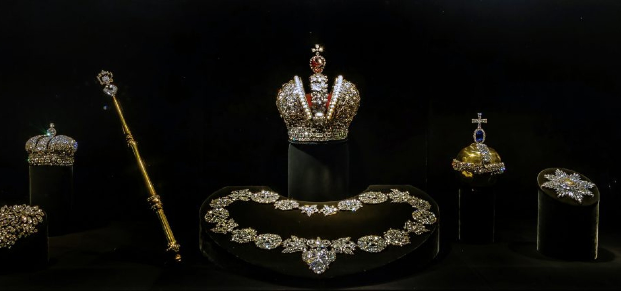 克里姆林宫内的钻石库,是一个令人心怀敬畏之地。毕竟,这是国家真正的宝库:稀有天然金块、帝王权杖、巨型宝石乃至钻石镶嵌的俄罗斯地图。所有这些都珍藏于武器库大殿的展厅之内。