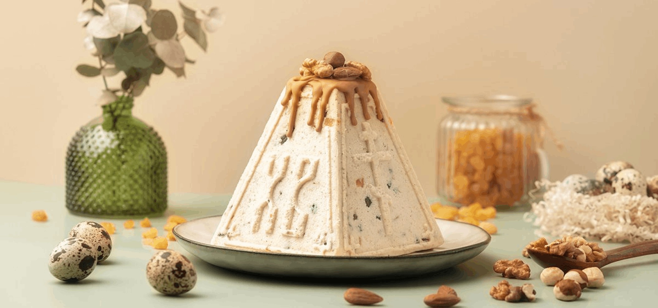 复活节芝士塔以芝士、糖、黄油、牛奶、鸡蛋和葡萄干制成,同样可在商店购买成品。