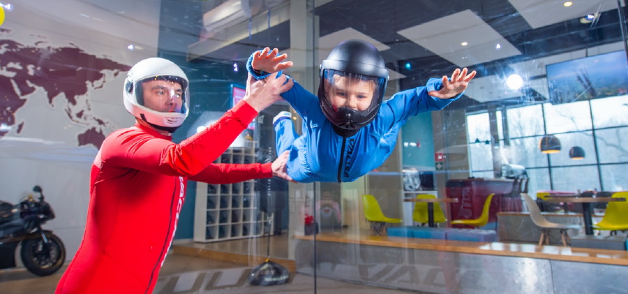 风洞模拟自由落体,强大的气流将人向上托起。您可以感受跳伞的刺激,但无需飞机、高度和风险。风洞很高,气流速度接近飓风风速,但一切完全可控。甚至儿童也可以飞行——无需准备,指导只需几分钟。