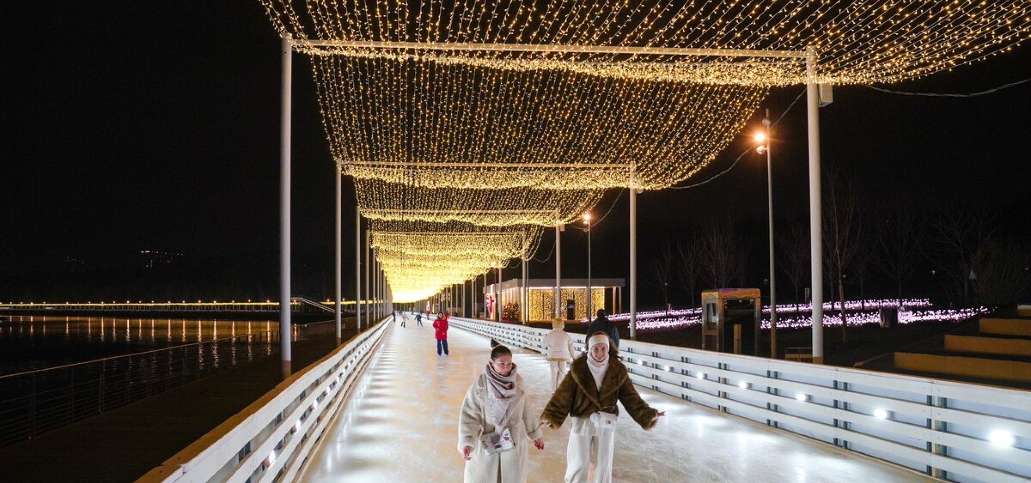 • 沿莫斯科河岸延伸的景观冰道,全长1.7公里,上方装饰有绵延1,400万盏灯的光带;