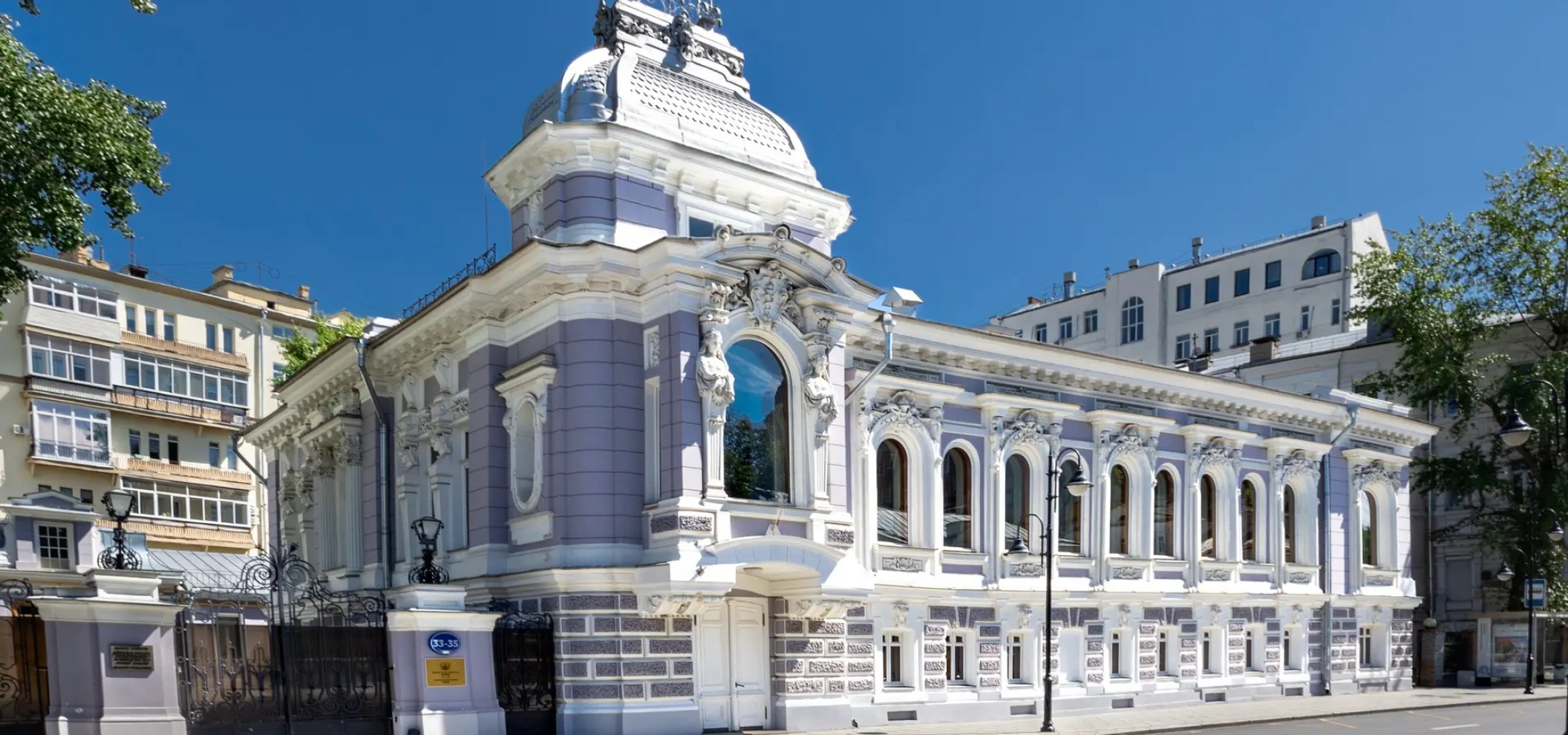 路线最后一站是科罗布科娃庄园(The O.P. Korobkova Mansion)。这幢非同寻常的淡紫色建筑建于1866年,以鱼鳞状穹顶、狮鹫和狮面灰泥浮雕装饰而著称。