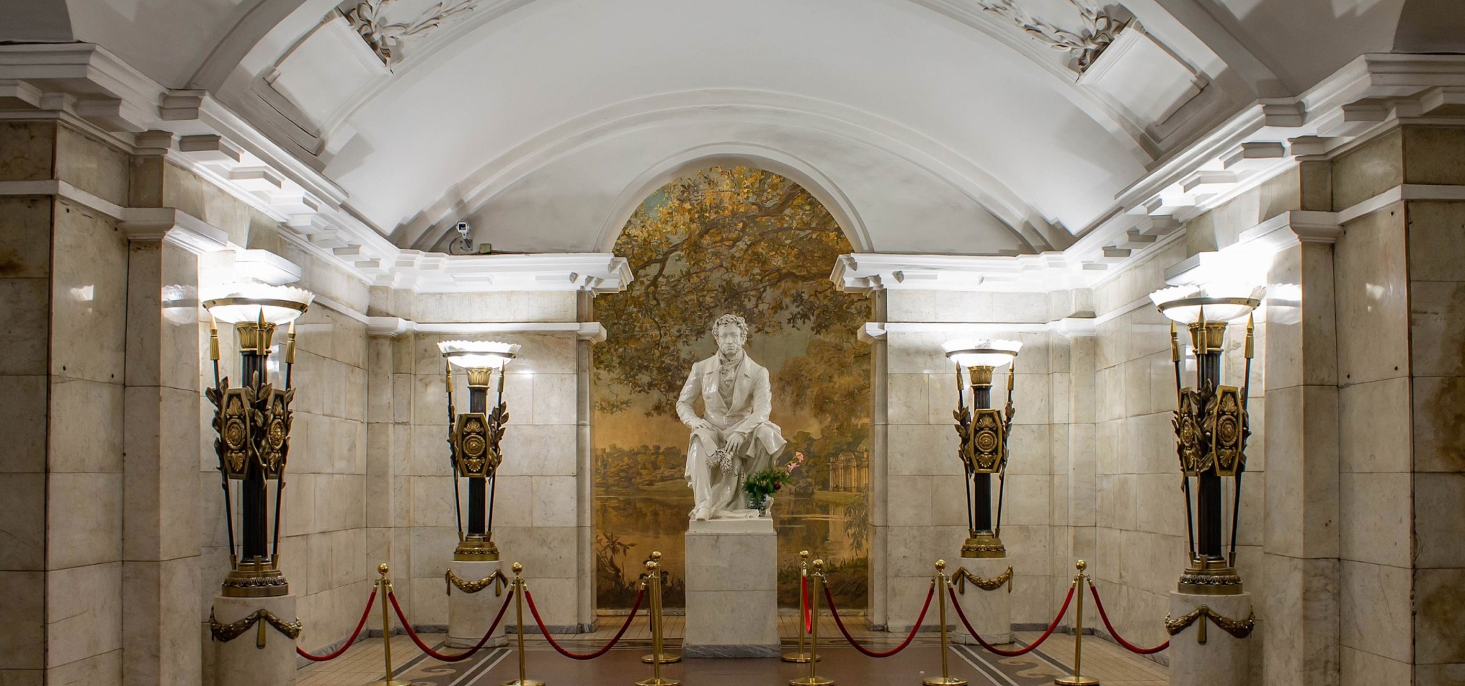 车站的设计风格简约而优雅。白色和灰色的大理石墙壁配以黑色花岗岩的点缀,使“普希金站”显得庄重。在车站内设有诗人塑像和纪念牌匾,突显了对这位文学天才的致敬。