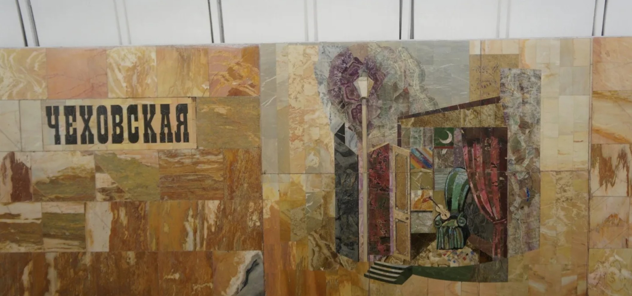 “契诃夫站”的设计灵感来源于作家的作品。大理石墙上雕刻着他作品中的场景,整个车站的氛围令人联想到契诃夫时代典雅而隐秘的知识分子环境。主要的装饰材料为白色和灰色大理石,以及突显内饰简约与精致的深色花岗岩。