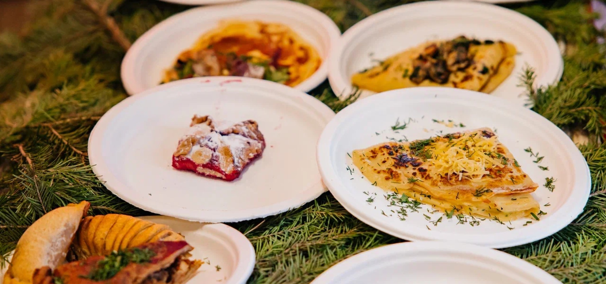 传统俄式美食(薄饼、饺子、肉馅/水果馅汤圆)与甜点(蜂蜜、面包圈、果脯软糕)。