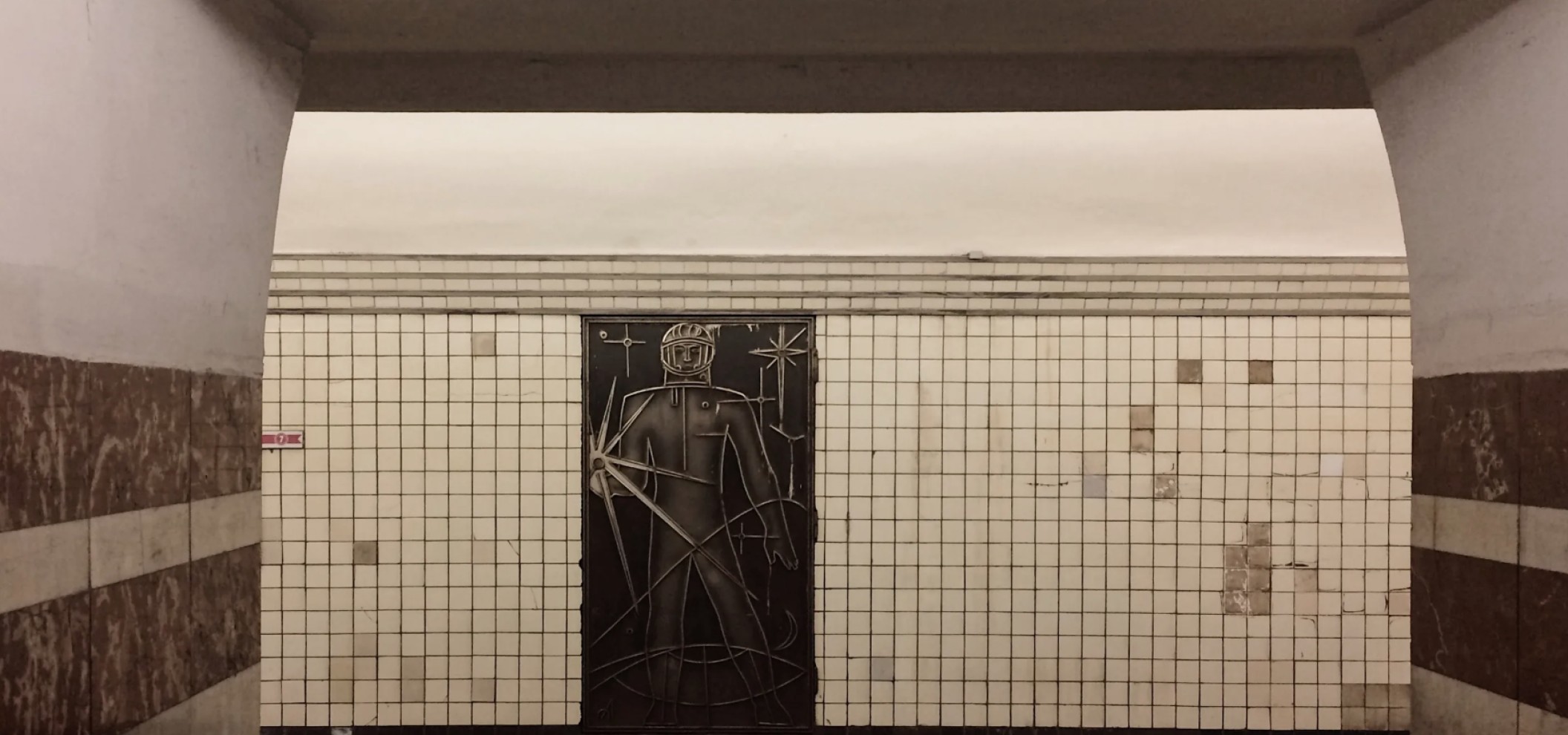 中央大厅的端壁上有一幅名为“宇宙时代的早晨”的壁画,传达了人类对星际未来的梦想。在大厅中可以看到尤里·加加林的肖像——这是对征服宇宙的骄傲的象征。
