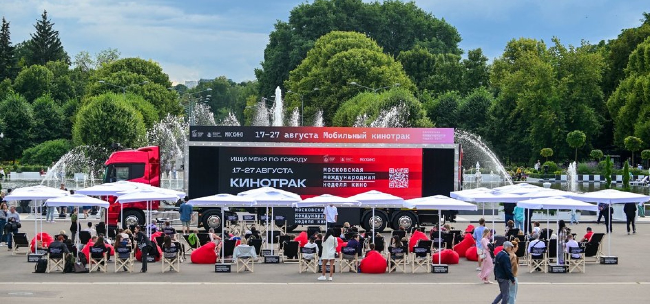 配备车载巨幕,支持昼夜放映。它将赋予城市地标空间——如高尔基公园、“Krasnaya Presnya”公园、Kuskovo庄园及“Depo”三站美食广场——全新的露天影院功能。片单包含来自俄罗斯、意大利、法国、美国等30余部影片,如《让娜·杜巴利》《奴隶》《莫斯科不相信眼泪》与《传奇17号》。每处场地均配备舒适坐垫、躺椅并提供免费爆米花。