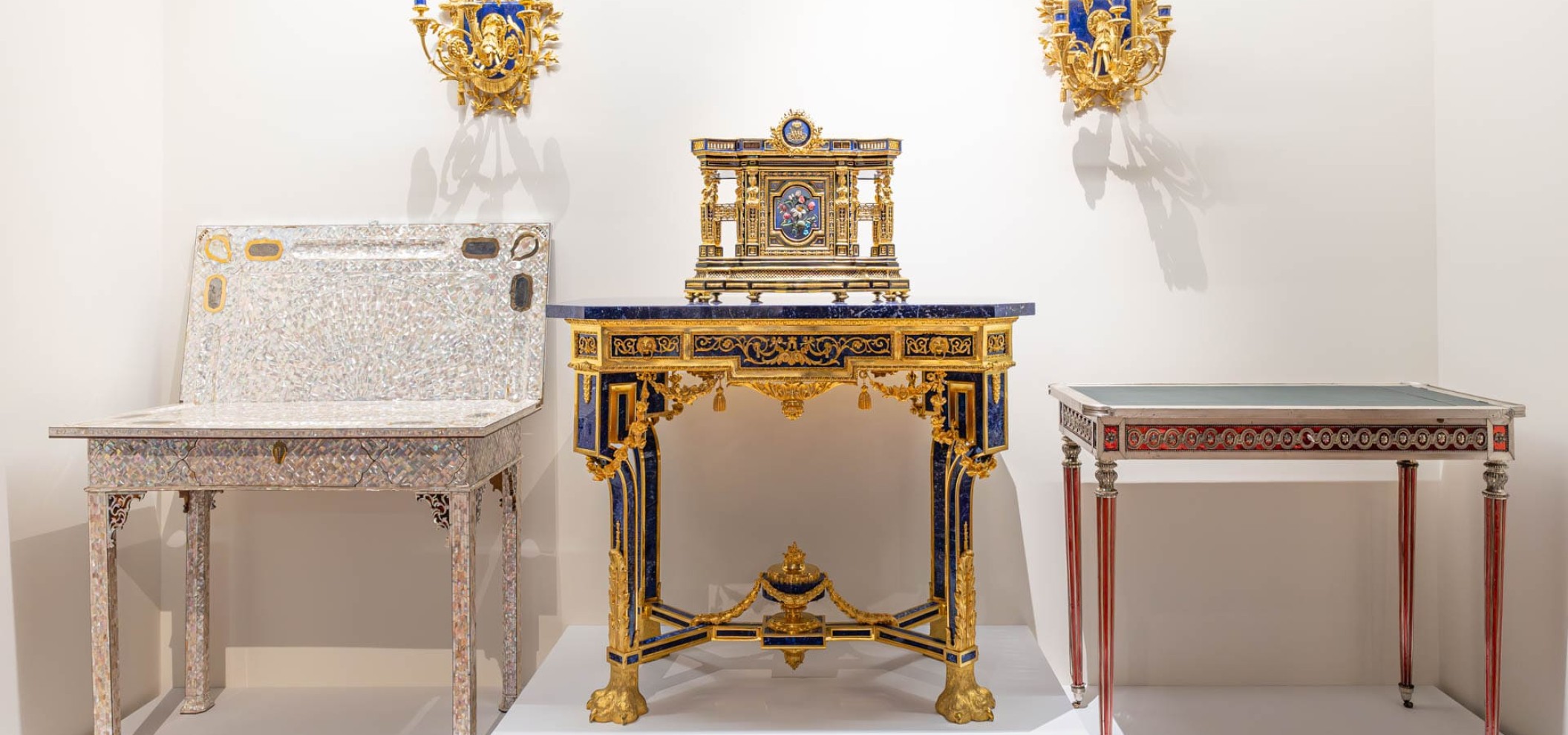 另有为路易十六和玛丽·安托瓦内特制作的"和平与丰饶"钟表,别具故事。法国大革命后,它们流入保罗一世城堡,如今再次踏上旅程——此次是作为博物馆项目的一部分。玛丽亚·费奥多罗芙娜与尼古拉一世的孔雀石套装亦是首次在皇村之外展出。