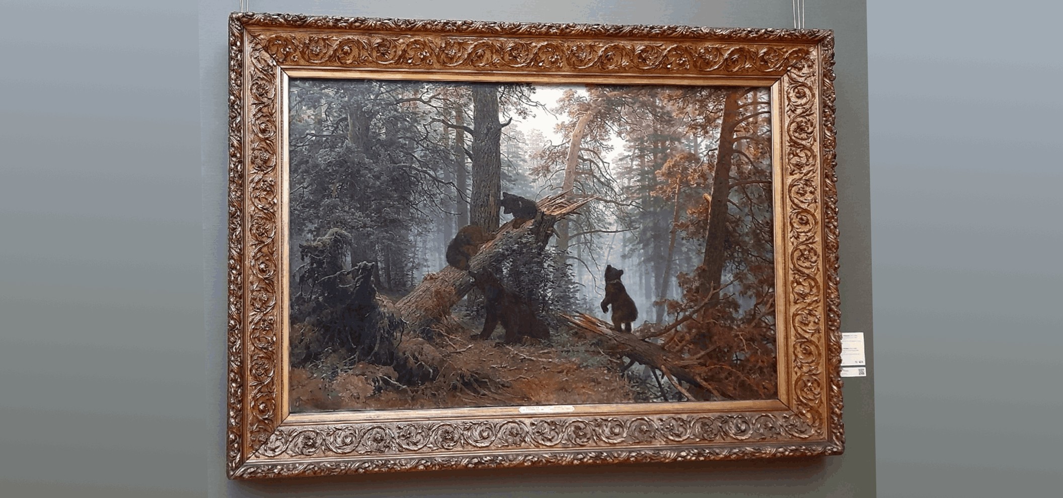 这幅画举世闻名,被誉为俄罗斯绘画中最具辨识度的作品之一。画面呈现了俄罗斯自然风光的意境——茂密的森林、晨雾弥漫与野性的静谧。