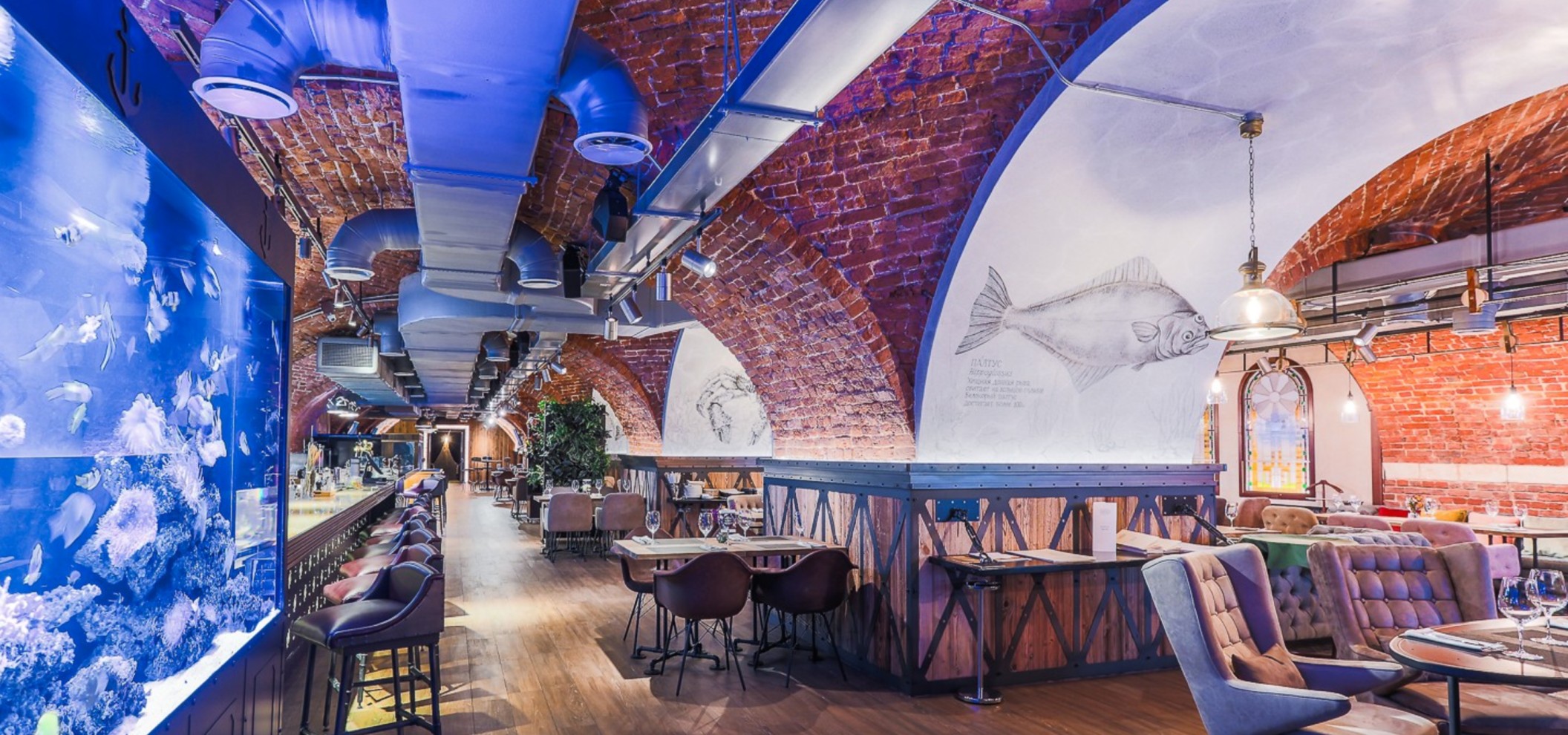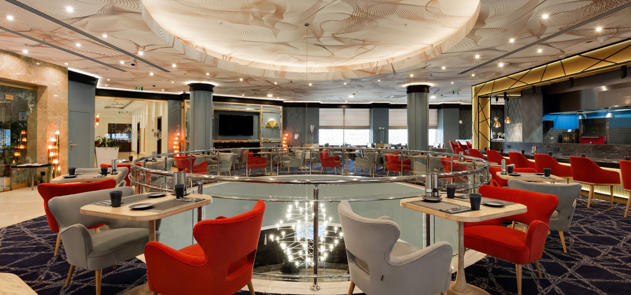 这家位于鲁萨科夫街的假日酒店内的餐厅,以时尚的室内装潢和多汁的牛排吸引顾客。壁炉不仅是温暖的来源,也是设计的亮点,使空间变得格外舒适。