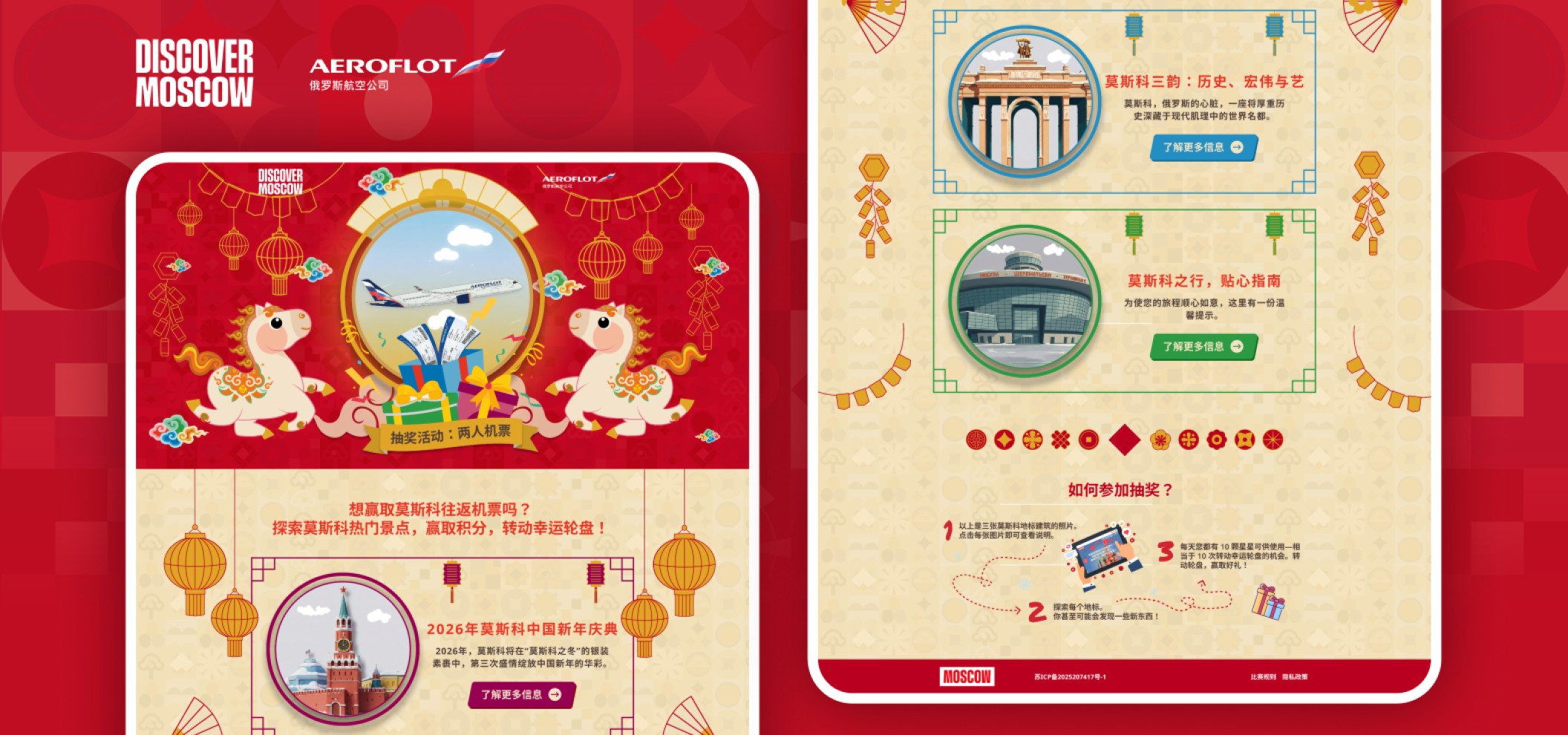 这是一场专为中国游客打造的趣味抽奖活动,带您领略莫斯科的独特魅力。活动由项目官方合作伙伴——俄罗斯国际航空公司提供独家支持,终极大奖为该公司提供的莫斯科往返机票。