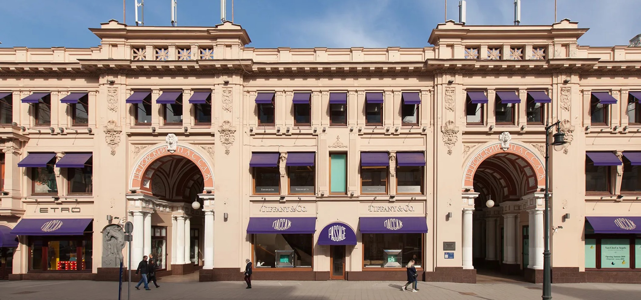 长廊内设有服装精品店、珠宝店和古董店。内部空间以历史风格装饰。该综合体因其20世纪初的建筑风格而吸引游客。