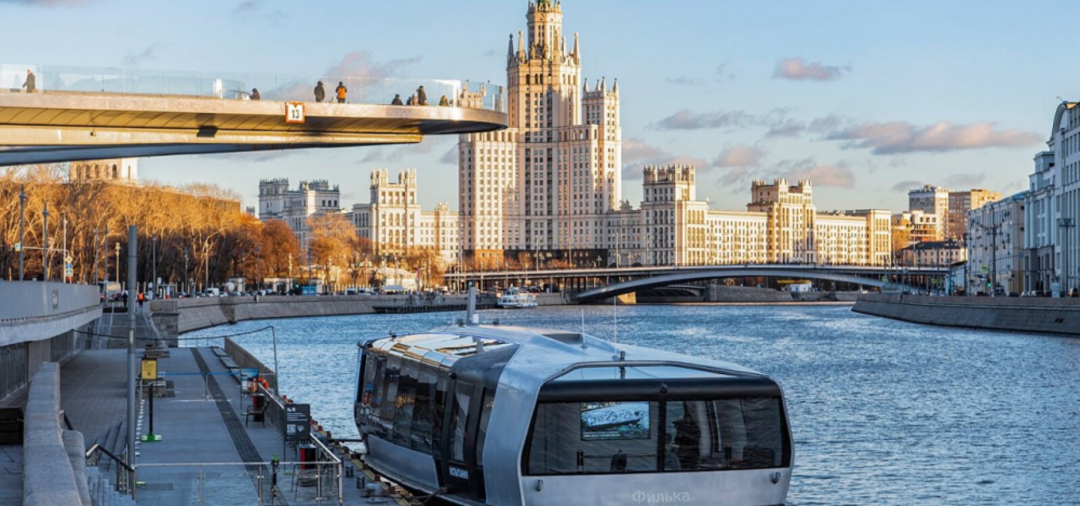 作为河流运输发展计划的一部分,这条线路将于 2021 年开通,集环保(零排放)和教育价值于一体。乘客可以利用语音导游了解莫斯科河沿岸景点的历史,或者从一个不同寻常的角度欣赏城市美景。