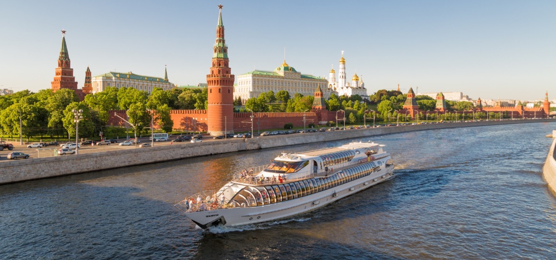乘船游览是从独特视角欣赏莫斯科最受欢迎的方式之一。航线途经首都历史中心,涵盖标志性景点:克里姆林宫 (Kreml')、基督救世主大教堂 (Khram Khrista Spasitelya)、斯大林式摩天大楼 (stalinskiye vysotki)、莫斯科城CBD摩天大楼、桥梁和堤岸。